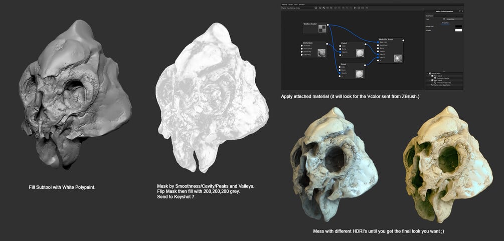 Keyshot Material used in rendering the Sculptris Pro Skulls ZBrush 2018.
